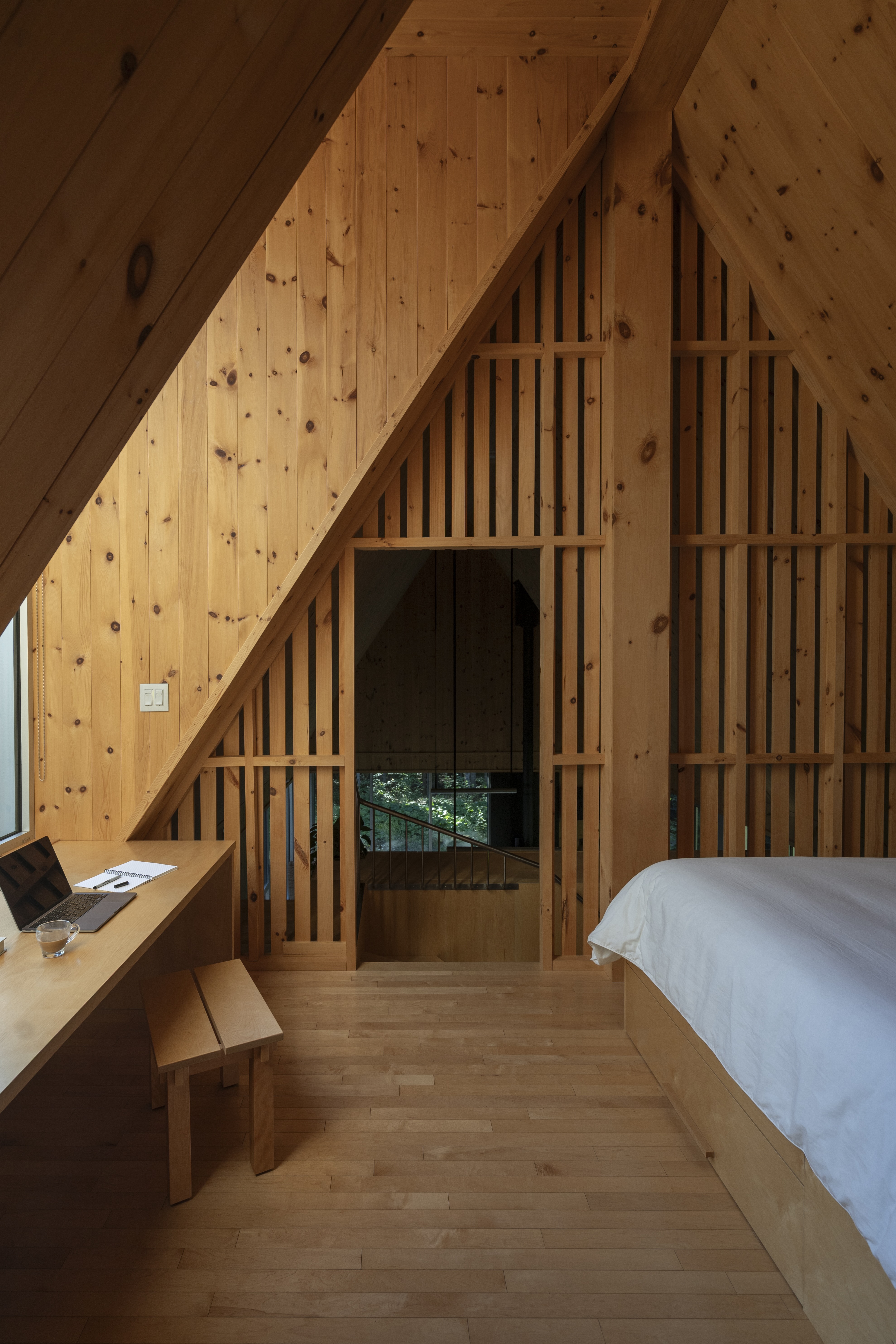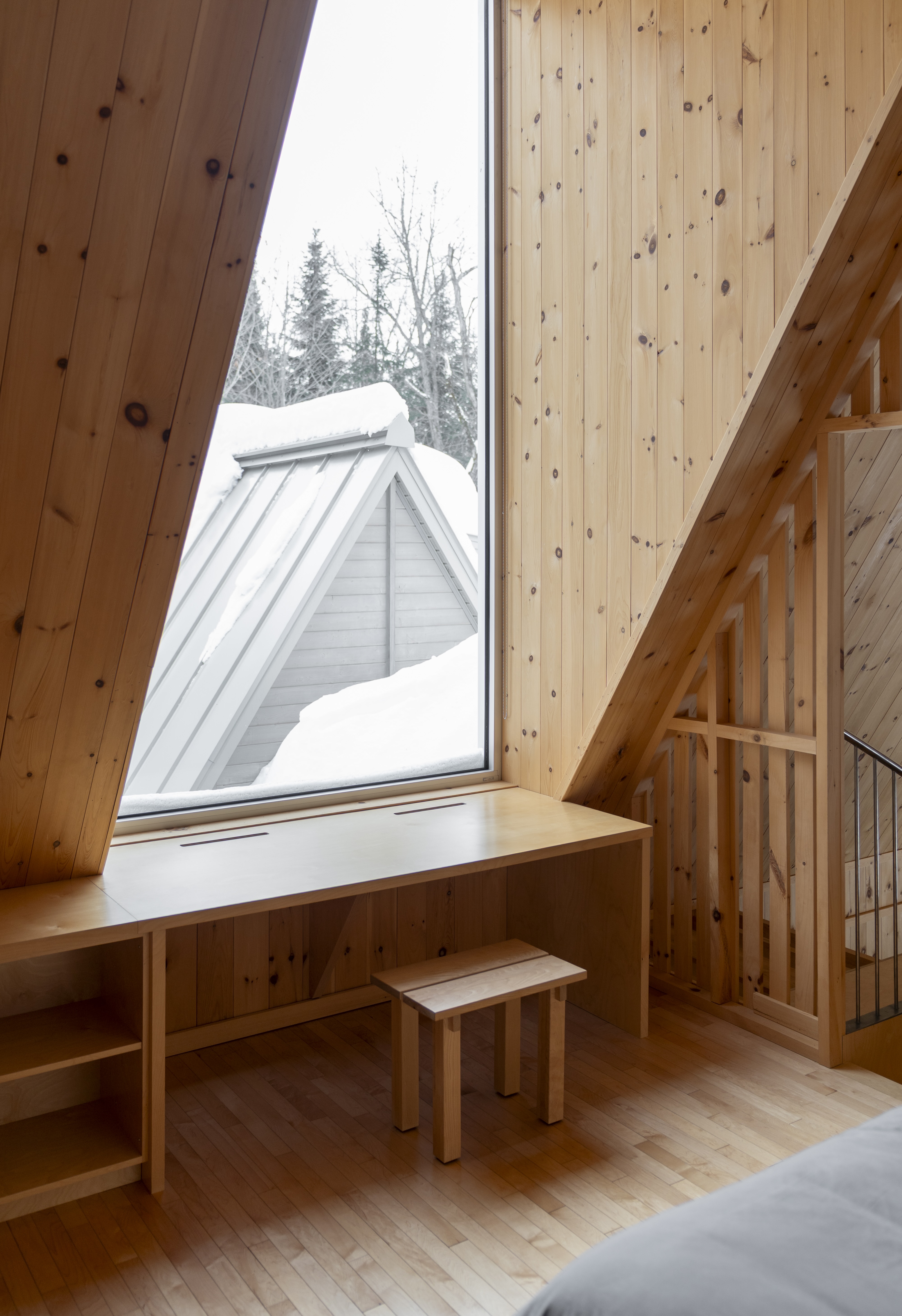 Dans le cadre du développement de BESIDE Habitat à Rawdon, nous avons réalisé le prototypage et la fabrication d’une ligne de mobilier dédiée à des chalets expérientiels. Conçues en merisier et contreplaqué Baltique, ces pièces ont été développées en étroite collaboration avec Appareil Architecture pour répondre à un besoin de durabilité et de simplicité, créant un dialogue authentique entre le design et l’environnement naturel.